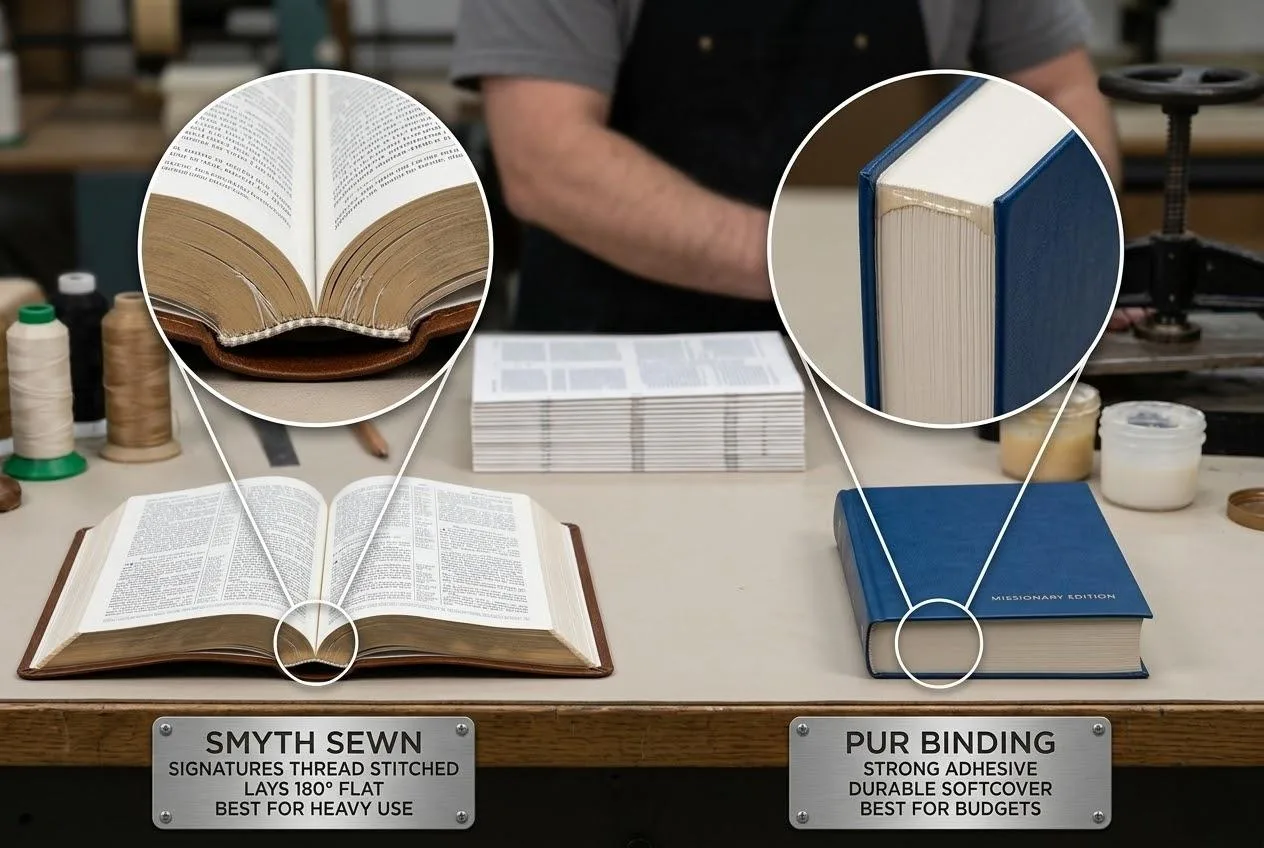 - Mein Rat: Ich beauftrage Smyth Sewn Binding für alle ledergebundenen Bibeln. Ein einziger gebrochener Buchrücken in einer hochwertigen Ausgabe kann Ihre berufliche Glaubwürdigkeit zerstören.